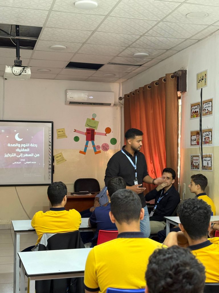 وتضمّنت المبادرة سلسلة من المحاضرات التفاعلية التي قدّمها طلبة كلية الصيدلة بإشراف الدكتورة روان حويطات والدكتورة رزان أبو جابر، تناولت خلالها موضوعات صحية أساسية مثل أهمية النوم الكافي ودوره في تعزيز التركيز والنمو السليم، وأضرار مشروبات الطاقة وتأثيرها على الجهاز العصبي والقلب، إضافةً إلى أهمية التغذية المتوازنة في تقوية المناعة والحفاظ على النشاط البدني والعقلي. كما جرى خلال اللقاءات تسليط الضوء على العادات الصحية السليمة الواجب اتباعها، مع التنبيه إلى الممارسات الخاطئة التي قد تؤثر سلبًا على صحة الطلبة وسلوكهم اليومي.