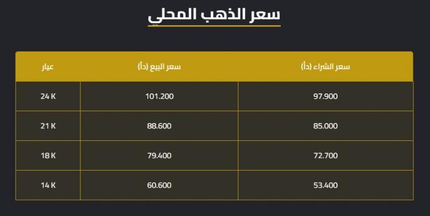 ارتفعت أسعار الذهب في السوق المحلي مجددا اليوم الثلاثاء، وفق التسعيرة الثانية الصادرة عن النقابة العامة لأصحاب محلات تجارة وصياغة الحلي والمجوهرات.