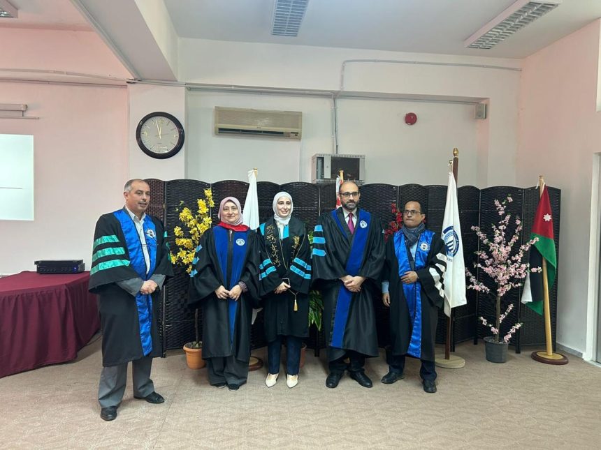 وتألفت لجنة المناقشة من أ.د. رائدة خليل مشرفاً ورئيساً للجنة، وأ.د. محمد القضاة من كلية الطب في الجامعة الهاشمية ممتحناً خارجياً، ود. مروان أبو حلاوة ممتحناً داخلياً.