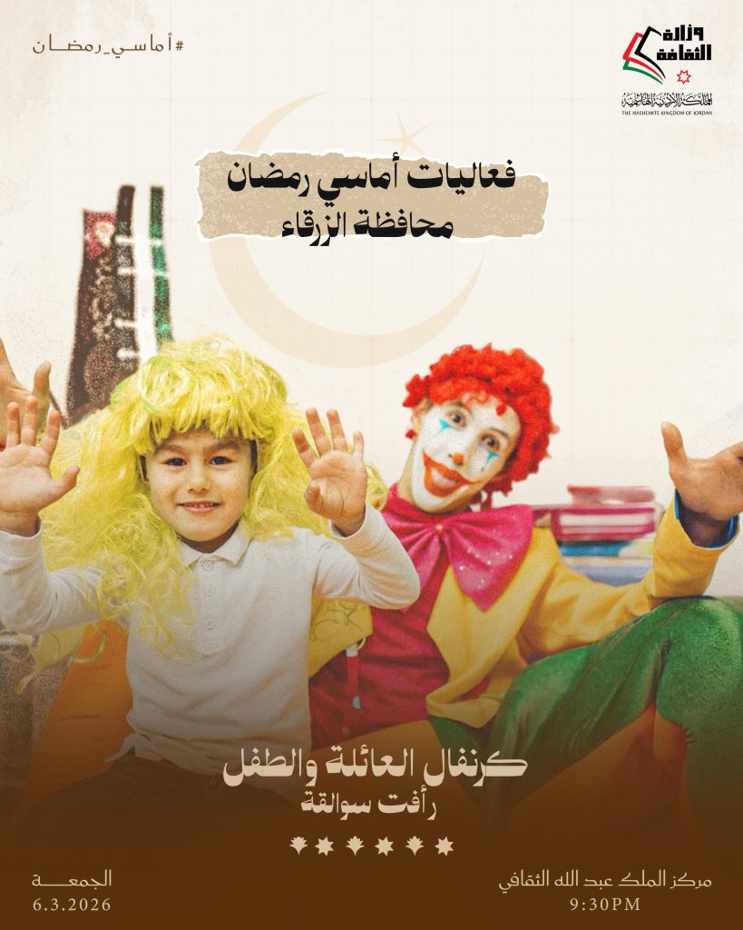ويتضمن البرنامج فعاليات متنوعة تراعي التعدد الثقافي وتعمل على ترسيخ القيم الإيجابية خلال أيام الشهر الفضيل، كما يشتمل البرنامج على فقرات ترفيهية مخصصة للأطفال ومناسبة للعائلة الأردنية، بما يعكس القيم السمحة لرمضان، مؤكدًا أن الحراك الثقافي يشكل جزءًا أصيلًا من المشهد الرمضاني في المملكة.
