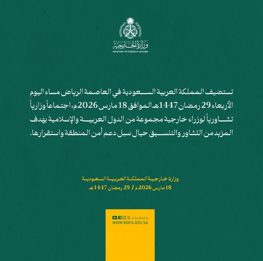 قالت وزارة الخارجية السعودية، الأربعاء، إن المملكة ستستضيف اجتماعا تشاوريا لوزراء خارجية عدد من الدول العربية والإسلامية في الرياض.