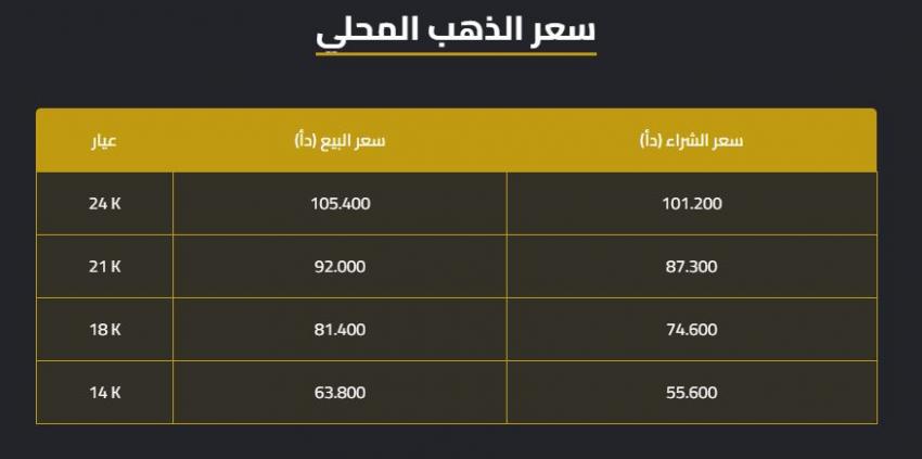 وبلغ سعر الغرام الواحد من الذهب عيارات 24 و18 و14 لغايات البيع من محلات الصاغة عند 105.40 دينارا و81.40 دينارا و63.80 دينارا على التوالي.