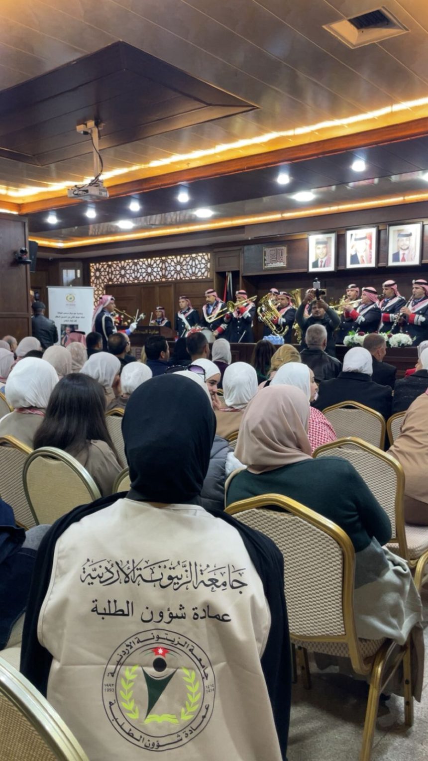 شاركت عمادة شؤون الطلبة / شعبة الأندية الطلابية في جامعة الزيتونة الأردنية في فعاليات “كرنفال المحبة للقائد”، الذي أُقيم برعاية سموّ الشريفة بدور بنت عبد الإله، احتفاءً بعيد ميلاد جلالة الملك عبد الله الثاني ابن الحسين، وذلك في المكتبة الوطنية بالعاصمة عمّان، وسط حضور رسمي وشعبي واسع عكس مكانة المناسبة وأهميتها الوطنية. وتأتي هذه المشاركة في إطار حرص الجامعة على تعزيز حضورها الفاعل في مختلف المناسبات الوطنية، وترسيخ قيم الانتماء والولاء لدى طلبتها، حيث جسّد طلبة شعبة الأندية الطلابية صورة مشرّفة من خلال مشاركتهم المتميزة في فعاليات الكرنفال، إلى جانب عدد من المؤسسات والهيئات الوطنية المشاركة، بما يعكس وعيهم بالدور المجتمعي والوطني الذي تضطلع به الجامعة. وشهدت الفعاليات تفاعلًا لافتًا من الطلبة ضمن أجواء احتفالية مميزة، حيث تابعوا الفقرات الفنية والشعرية والعروض الوطنية التي تضمنها البرنامج، كما شاركوا في المسيرة الوطنية التي جابت شوارع العاصمة عمّان، معبرين عن فخرهم واعتزازهم بالقيادة الهاشمية، ومؤكدين التفافهم حول مسيرة الوطن. وفي ختام المشاركة، عبّر الطلبة عن اعتزازهم بالمساهمة في هذه الفعالية الوطنية، مؤكدين حرصهم على تمثيل جامعتهم بأفضل صورة، واستمرار مشاركتهم الفاعلة في المبادرات التي تعزز قيم الولاء والانتماء، وتسهم في دعم مسيرة الوطن في ظل القيادة الحكيمة لجلالة الملك.