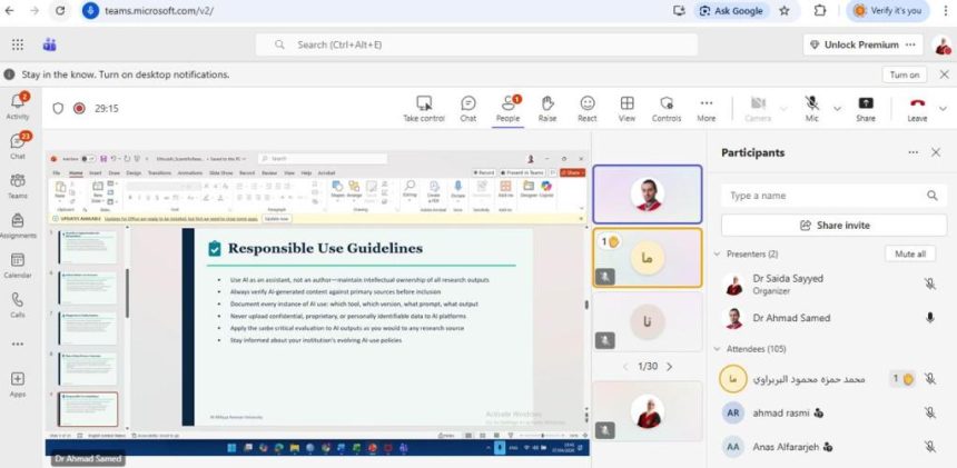 ورشة في عمان الأهلية حول ضوابط استعمال الذكاء الاصطناعي في البحث العلمي والرسائل الجامعية
