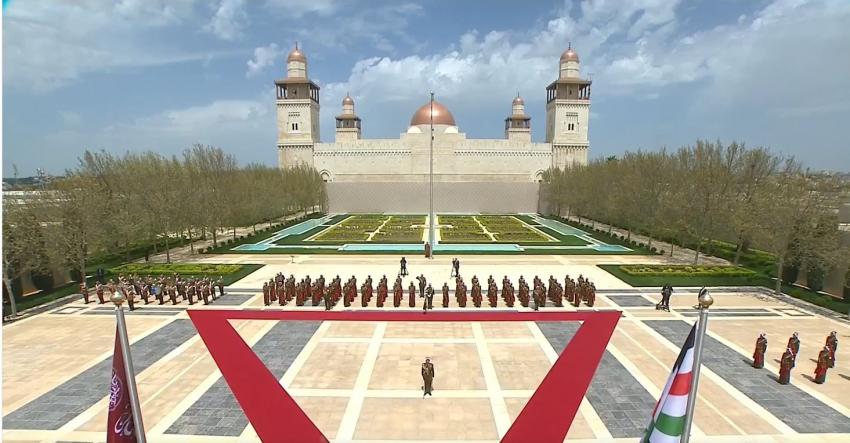 ولدى وصول جلالة الملك إلى موقع الاحتفال عزفت موسيقات القوات المسلحة تحية لجلالته.