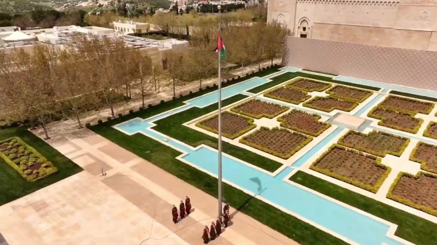 شهد جلالة الملك عبدالله الثاني، اليوم الخميس، مراسم رفع العلم في قصر الحسينية، بمناسبة اليوم الوطني للعلم الأردني.