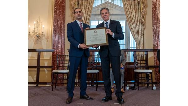 جاء ذلك خلال الحفل الذي تقيمه وزارة الخارجية الامريكية في العاصمة واشنطن سنوياً لتكريم عدد من الجهات والأفراد البارزين على مستوى العالم، حيث تم اختيار الفائزين من 188 دولة، وتم تكريم الفائزين على مستوى العالم في الحفل الذي أقيم يوم أمس.