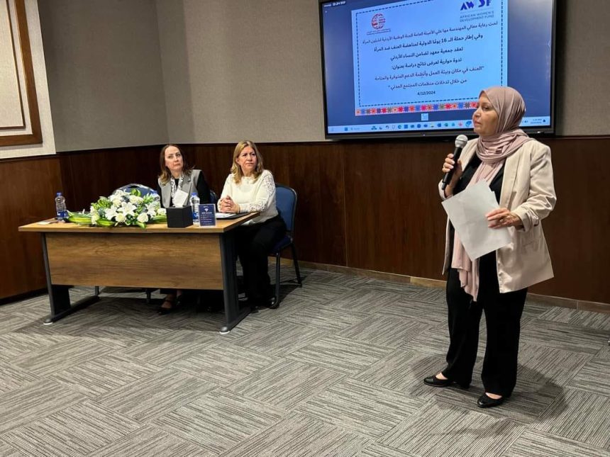 عمان، الأردن – أطلقت جمعية معهد تضامن النساء الأردني دراسة نوعية بعنوان “العنف في مكان وبيئة العمل وأنظمة الدعم المتوفرة من خلال تدخلات مؤسسات المجتمع المدني”، بدعم من الصندوق الأفريقي لتنمية المرأة (AWDF). وجاء إطلاق الدراسة ضمن الحملة الوطنية السنوية لمناهضة العنف ضد النساء والفتيات لعام 2024 (حملة 16 يوم)، والتي تهدف إلى تعزيز الوعي حول قضايا العنف والتمييز الذي تواجهه النساء في مختلف البيئات، بما في ذلك مكان العمل.