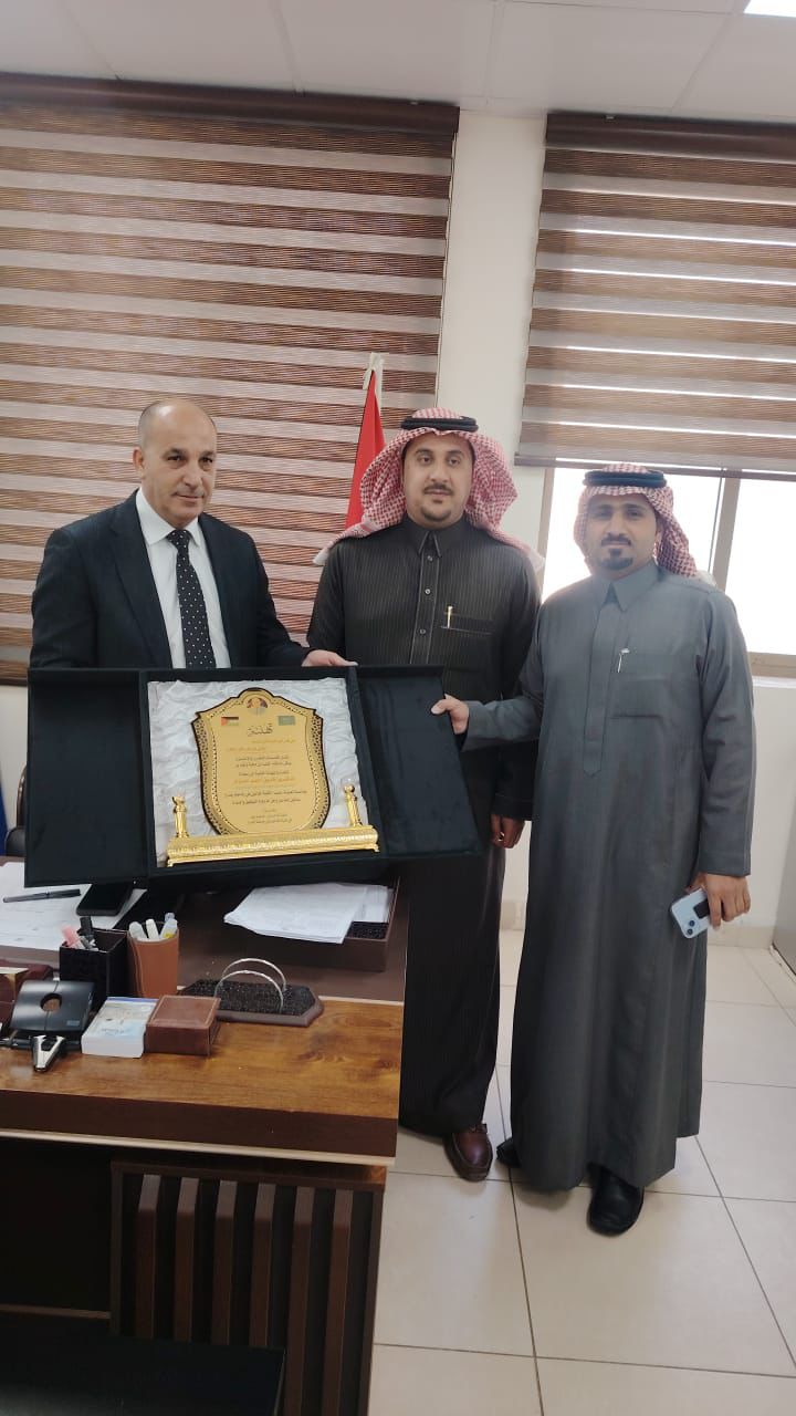 كرم وفد طلابي من المملكة العربية السعودية الشقيقة من خريجي كلية القانون في جامعة جدارا والحاصلين على درجة الماجستير ، عميد الكلية د. فاروق العزام بدرع تقدير للكلية ودورها العلمي الريادي.