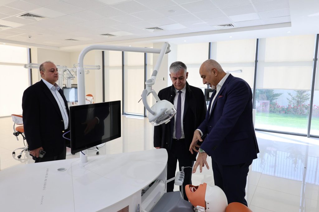 وتم اصطحاب الوفد في جولة على بعض مرافق الجامعة ومنها كلية طب الأسنان حيث كان في استقبالهم نائب الرئيس للشؤون الأكاديمية /عميد الكلية الأستاذ الدكتور أحمد حمدان، بالإضافة لزيارة كلية إدارة الضيافة والسياحة، ومجمع الأرينا الرياضي.