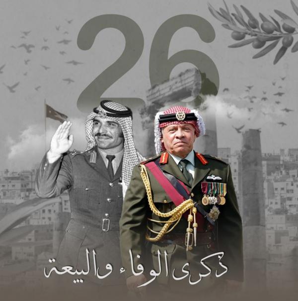 يحيي الأردنيون يوم 7 شباط الذكرى السادسة والعشرين ليوم الوفاء والبيعة، ذكرى رحيل المغفور له، بإذن الله، جلالة الملك الحسين بن طلال، طيّب الله ثراه، وتسلم جلالة الملك عبدالله الثاني سلطاته الدستورية، ملكا للمملكة الأردنية الهاشمية.