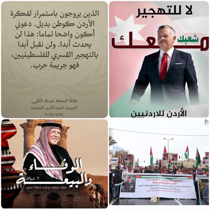 أننا في الأردن نرفض رفضا قاطعا قرارت الرئيس الأمريكي دونالد ترامب في تهجير أهل غزة الكرام إلى الأردن بشكل خاص وإلى اي مكان بشكل عام ونؤكد على أن الأردن للأردنيين ولا مجال لأي قول في هذا الشأن، كما أن فلسطين للفلسطينيين وحقهم في تقرير مصيرهم ،اليوم وفي هذه المرحلة كما نحن الأردنيون دوما من شتى المنابت والأصول من شمال المملكة إلى جنوبها ومن غربها إلى شرقها مرورا ببواديها ومخيماتها حول جلالة الملك عبدالله الثاني المعظم وسمو ولي العهد الأمير الحسين بن عبدالله الثاني حفظه الله ورعاه وندعو جميع الأشقاء في الدول العربيه إلى رفض تصريحات الرئيس الأمريكي دونالد ترامب في تهجير أهل غزة وكذلك ندعو المجتمعات الدوليه الصديقة إلى الوقوف مع المملكه الاردنيه الهاشميه ومع جلالة الملك عبدالله الثاني في حل القضيه الفلسطينية والسعي إلى أقامه الدولة الفلسطينية المستقلة وعاصمتها القدس الشريف.