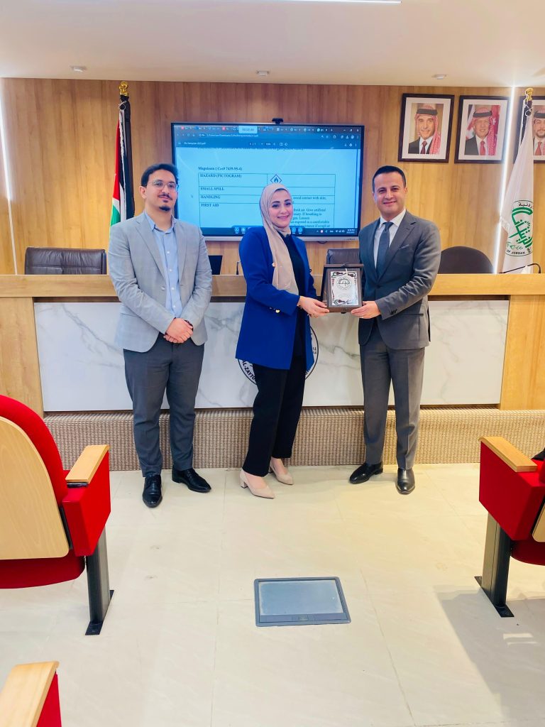 عقدت كلية الصيدلة في جامعة الزيتونة الأردنية بالتعاون مع مركز الاستشارات وخدمة المجتمع دورة تدريبية بعنوان “إدارة العمل الآمن داخل المختبرات”، قدمتها الدكتورة حنين أبو زيد والمهندسة مي المجاوله، بتنظيم الدكتورة سماح عطا، مساعد العميد لشؤون المختبرات.