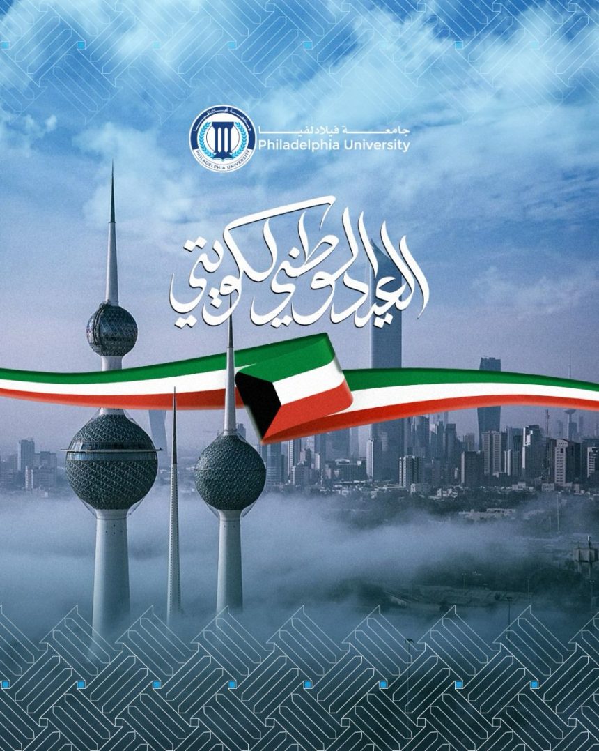 تهنئ أسرة جامعة فيلادلفيا، ممثلةً بمجلس أمنائها، ومجلس إدارتها، ورئيسها الأستاذ الدكتور عبدالله الجراح، وأعضاء الهيئتين الإدارية والأكاديمية، وطلبة الجامعة، دولة الكويت الشقيقة، قيادةً وشعبًا، بمناسبة العيد الوطني الـ 64