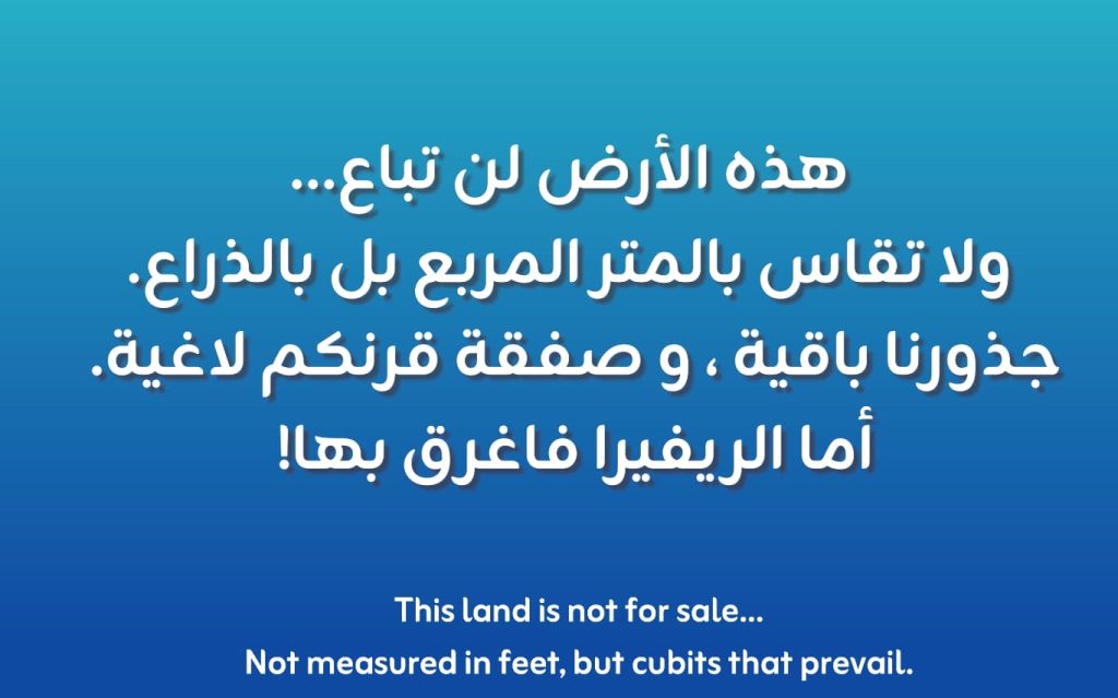 الجدير بالذكر أن الإعلان يحمل بيان في نهايته، وهو “كل من يحاول السيطرة على الأرض وتحويلها بإقامة ريفييرات سيفشل” فهذه الأرض ليست للبيع، وشعبها سيظل ينهض من تحت الدمار لاستردادها وإعادة بنائها بالتضامن والأمل، وقد جاءت فكرة الإعلان من فريق العلامة التجارية لـ زين، وقام بالإنتاج شركة جوي للإنتاج بالكويت، والإخراج لسمير عبود من لبنان، بمشاركة الصوت العربي المميز ماجد المهندس، مع أداء لمريم شهاب، بينم الكلمات من هبة حمادة، والتلحين من إيهاب عبد الواحد، والتوزيع من ميشال فاضل؛ والإنتاج بصري لـ VIP Films .