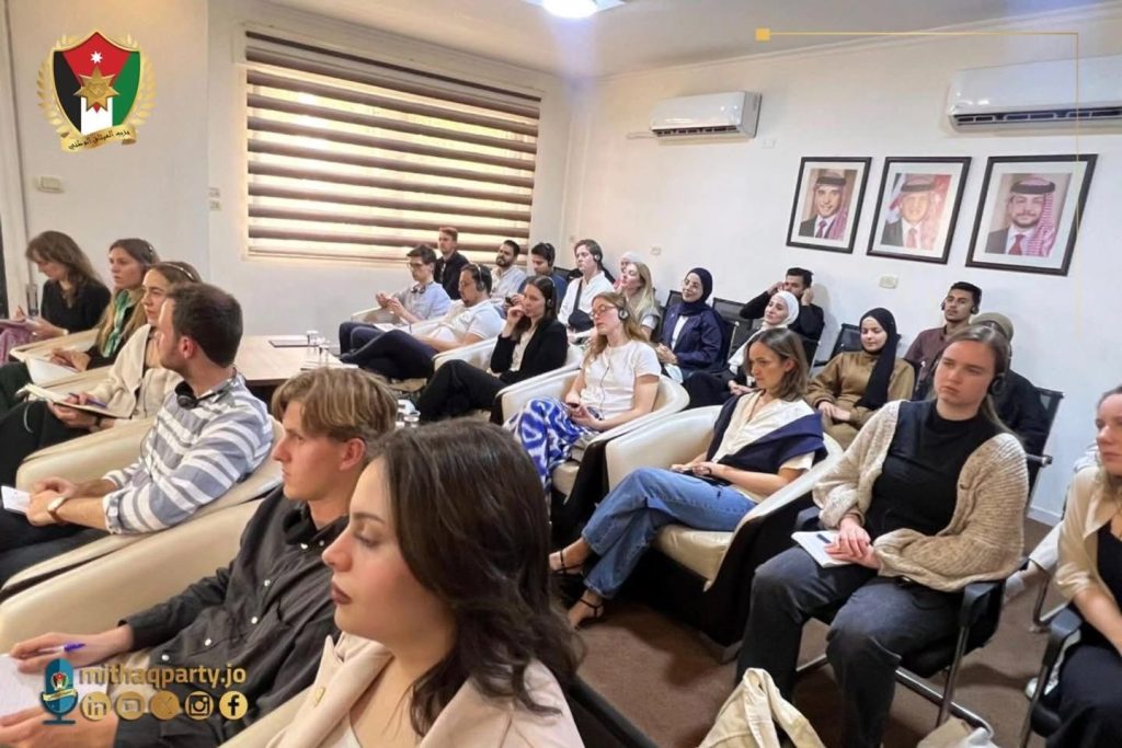 استقبل حزب الميثاق الوطني وفداً طلابياً ألمانياً بالتنسيق مع مؤسسة كونراد اديناور -الاردن , دار خلاله حوار سياسي معمق حول المستجدات السياسية في المنطقة والتحديث السياسي.