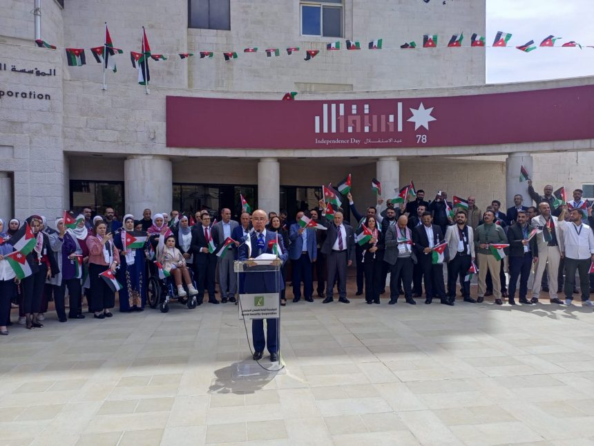 احتفلت المؤسسة العامة للضمان الاجتماعي بكافة إدارات فروعها ومكاتبها المنتشرة في مختلف محافظات المملكة بمناسبة اليوم الوطني للعلم الأردني الذي يصادف في السادس عشر من شهر نيسان من كل عام.