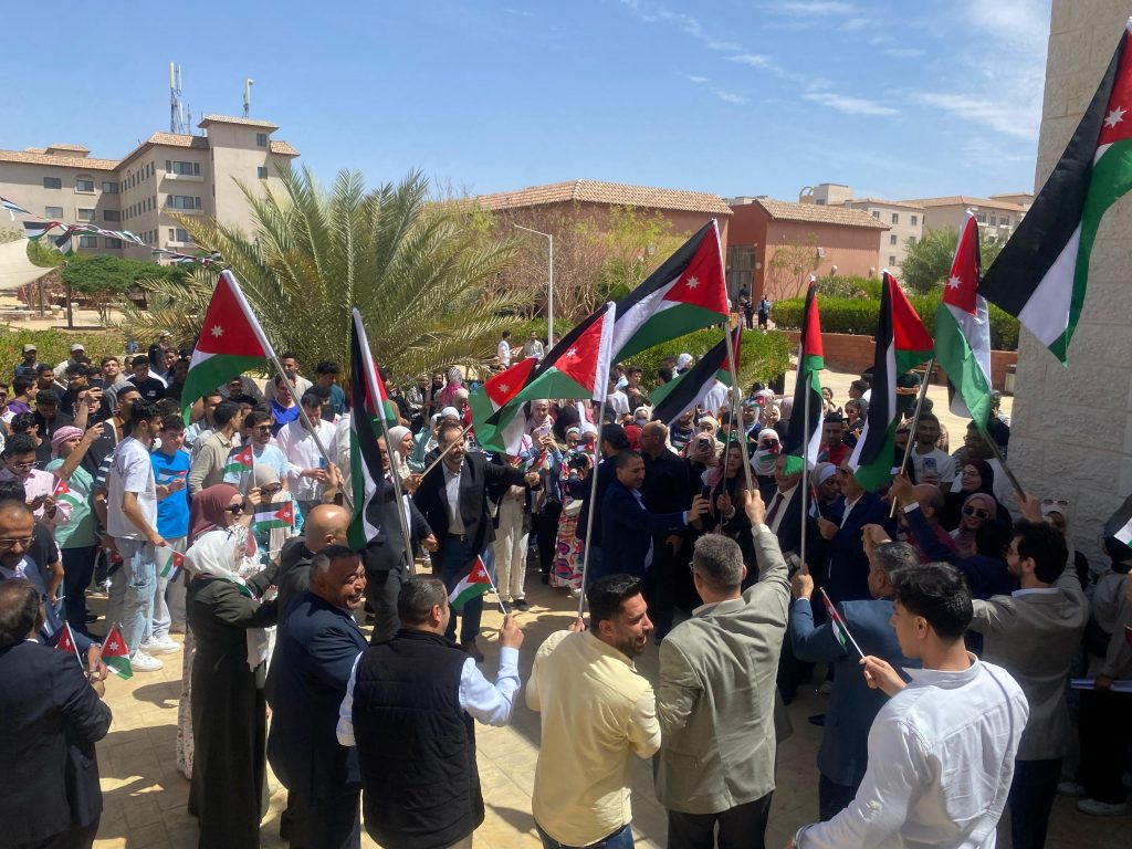 احتفلت اسرة جامعة العقبة للتكنولوجيا بيوم العلم الاردني بمشاركة اعضاء الهيئات الاكاديمية والادارية والطلبة.