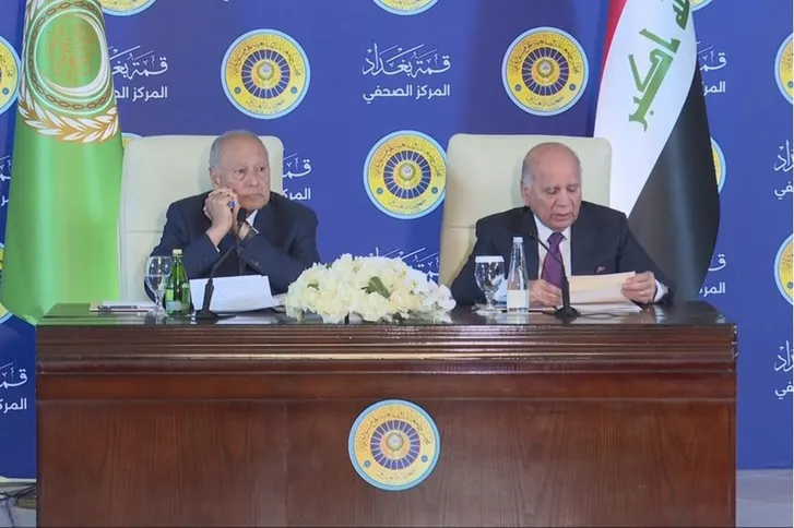 وقال حسين خلال مؤتمر صحفي مشترك مع الأمين العام لجامعة الدول العربية، أحمد أبو الغيط، إن البيان الختامي لقمة بغداد، التي عقدت في العاصمة العراقية، السبت، طالب المجتمع الدولي بتنفيذ قرارات مجلس الأمن الدولي بشأن العدوان على قطاع غزة، ووقف جميع الأعمال العدائية التي تزيد من معاناة المدنيين الأبرياء.