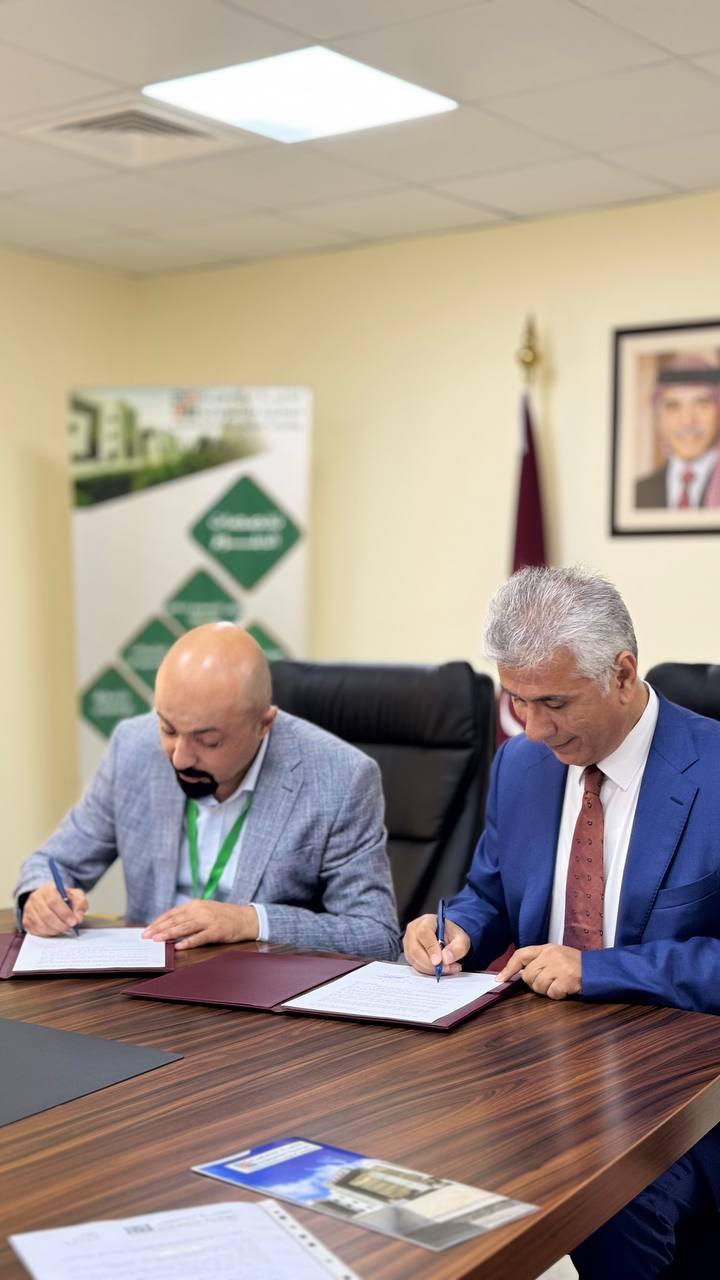 وقع الدكتور ايمن مقابلة عميد الكلية الجامعية الوطنية للتكنولوجيا والسيد خلدون محمد عسفا مدير جمعية آفاق الخيرية للتعليم مذكرة تفاهم وتعاون بين الكلية والجمعية التي تعنى بدعم الطالب الجامعي المحتاج والمتعثر .