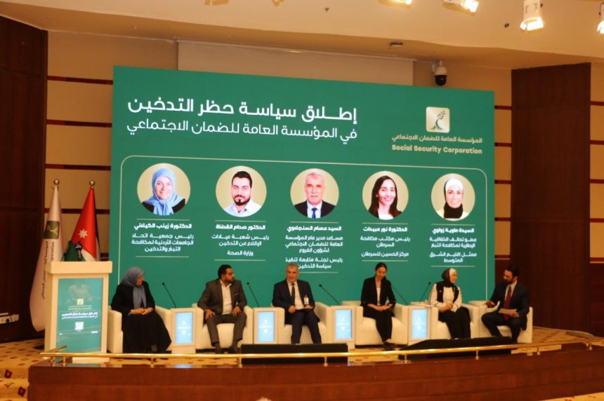 جاء ذلك خلال إطلاق مؤسسة الضمان الاجتماعي سياسة حظر التدخين بحضور وزير الصحة الأسبق الدكتور زيد حمزة وكافة الشركاء، حيث ستُطبق هذه السياسة في كافة مباني وفروع المؤسسة وداخل المركبات ومواقف السيارات المغلقة والاجتماعات والفعاليات التي ترعاها سواء داخل مبنى المؤسسة أو خارجها، والتي تتضمن توجيهات واضحة حول الأماكن التي يُسمح بها بالتدخين والإجراءات التي تُتَخذ في حال عدم الإلتزام، بالإضافة إلى الدعم الذي تقدمه المؤسسة للموظفين الذين يرغبون في الاقلاع عن التدخين.