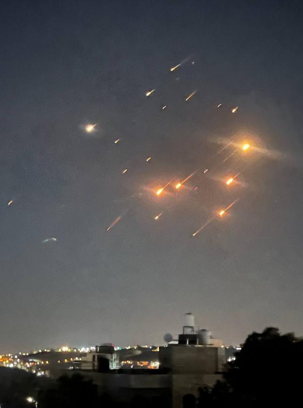 وقال الجيش الإسرائيلي إنه تم إطلاق وابلين من الصواريخ الإيرانية باتجاه إسرائيل في أول ساعتين من صباح الأربعاء. ودوت انفجارات في سماء تل أبيب.