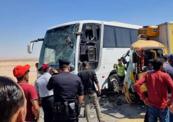 توفي شخصان واصيب 7 اخرون، إثر حادث تصادم وقع اليوم الأحد، بين مركبة وحافلة على الطريق الصحراوي في محافظة معان، وفق مصدر أمني.