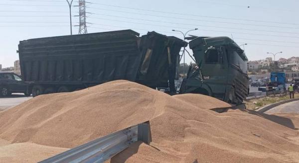 أوضح النقيب محمد الدروبي من إدارة السير أنه تم التعامل يوم أمس الثلاثاء مع حادث تدهور لمركبة شحن (قاطرة ومقطورة) على طريق المطار، للسير القادم من ما بعد جسر مرج الحمام باتجاه جسر الملك الأمير حسين. ويعود سبب الحادث إلى عدم أخذ احتياطات السلامة المرورية اللازمة أثناء القيادة، إضافة إلى مخالفة قيادة المركبة، حيث يشترط أن يكون سائقها حاصلًا على رخصة قيادة من الفئة السادسة برخصة قيادة من الفئة الأولى أو الثانية أو الثالثة، وهو ما أكده فريق التحقيق المروري الذي وصل إلى المكان بشكل فوري كسبب مباشر للحادث المروري.
