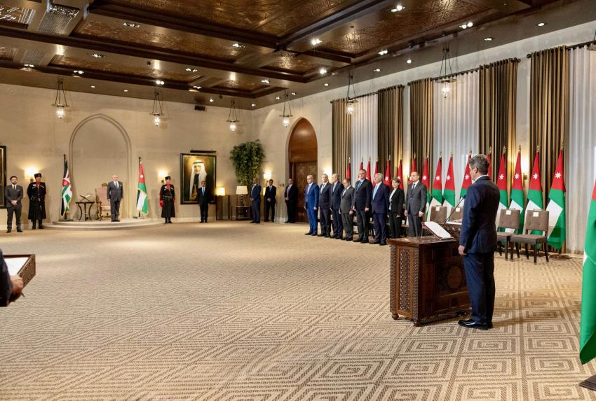 وأدى الوزراء اليمين الدستورية أمام جلالة الملك، في قصر الحسينية، بحضور سمو الأمير الحسين بن عبدﷲ الثاني ولي العهد.