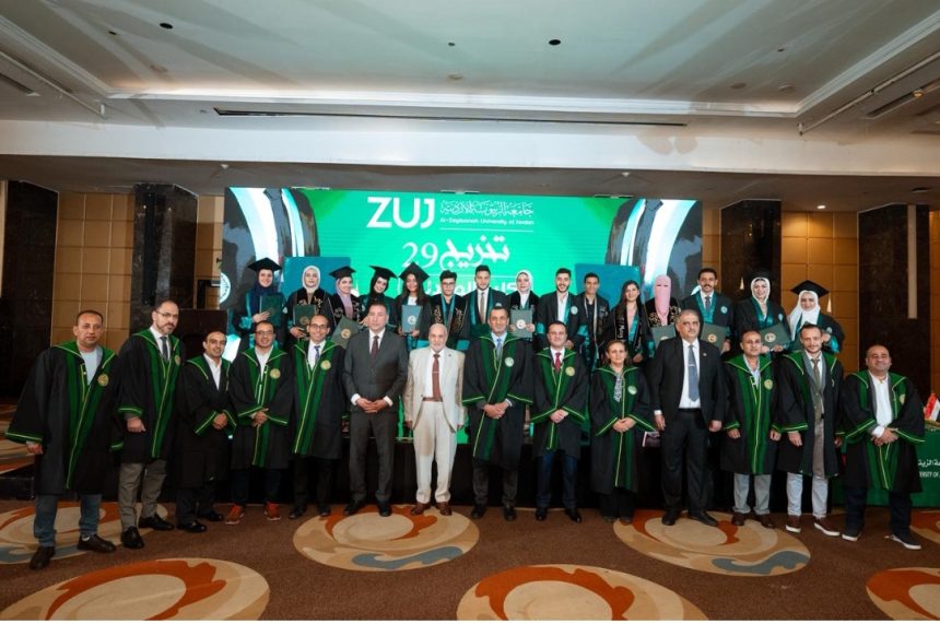 إحتفلت جامعة الزيتونة الأردنية بتخريج عدد من فرعي الفوج التاسع والعشرين من طلبة كليتي العلوم الطبية التطبيقية والصيدلة المصريين في القاهرة، بحضور كل من الأستاذ الدكتور طارق القرم، نائب رئيس الجامعة، والأستاذة الدكتورة سماح حسني، عميد كلية العلوم الطبية التطبيقية، والأستاذ الدكتور علاء الحسبان، عميد كلية الصيدلة.