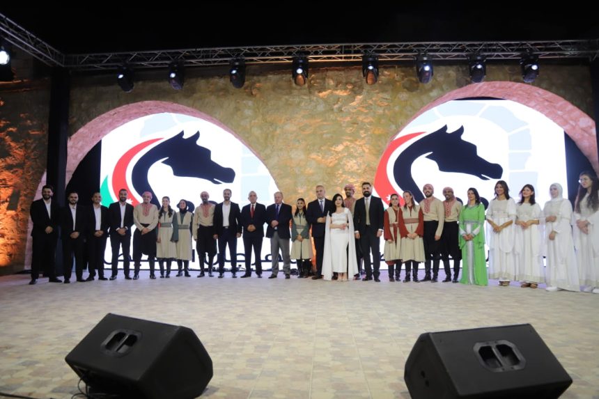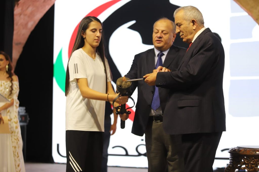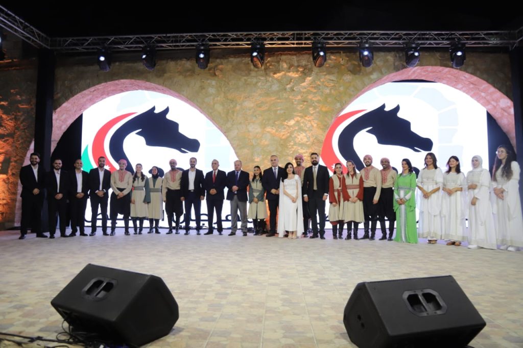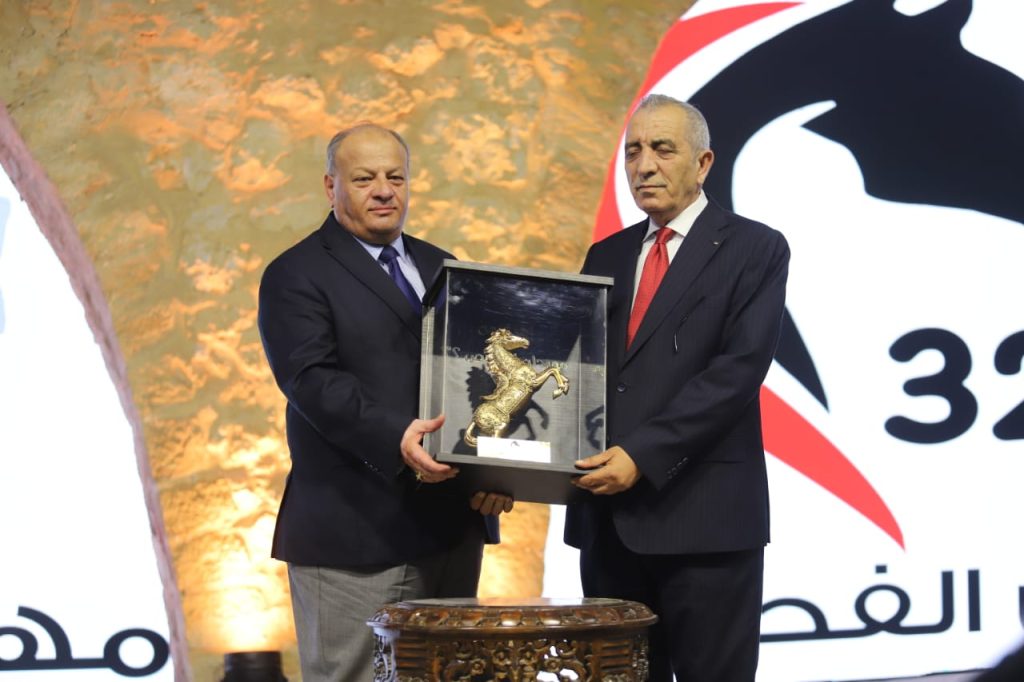 وقدم أيمن سماوي درعاً لوزير الثقافة مصطفى الرواشدة، يمثل الحصان رمز الفحيص.