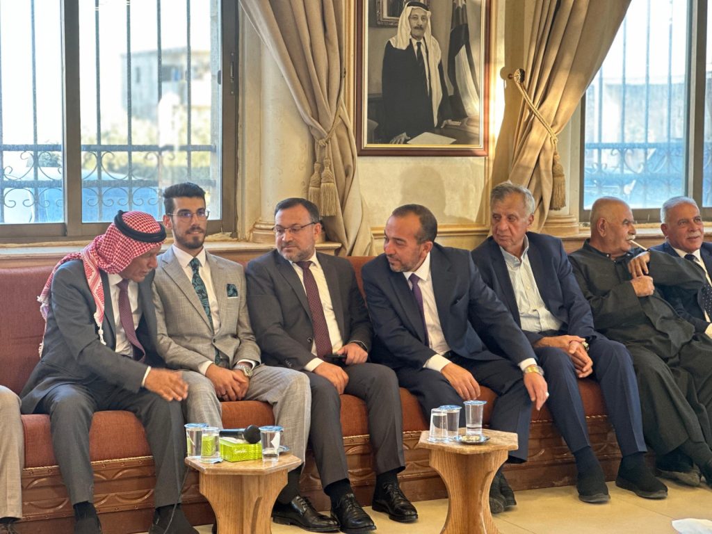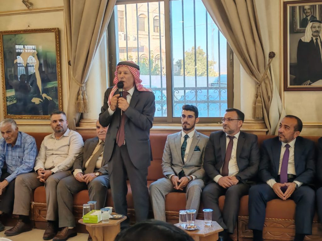 توجهت الجاهة الكريمة من آل غنام النجار من بيت محسير والتي ضمت شخصيات من كافة اطياف المجتع الاردني برئاسة سعادة النائب صالح العرموطي الى ديوان مثقال الفايز في ام العمد ، وكان في استقبال الجاهة سعادة النائب الشيخ ثامر ملوح الفايز ووجهاء ام العمد واهل العروس .
