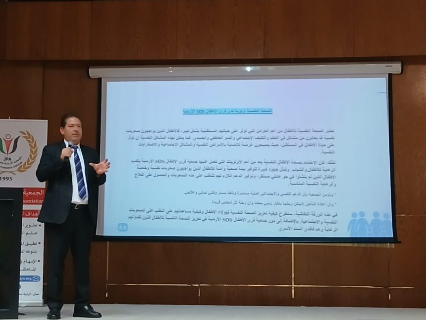 وقدّم المحاضر الدكتور سامر العزة/ مستشار الدعم النفسي والإجتماعي لدى جمعية قرى الأطفال SOS الأردنية محاضرة بعنوان (جهود قرى الأطفال SOS الأردنية في تعزيز الصحة النفسية) هدفت المحاضرة بشكل أساسي إلى التعرف على جهود ودور جمعية قرى الأطفال الأردنية SOS في مجال تعزيز الصحة النفسية من خلال البرامج والخدمات التي تقدمها للأطفال والشباب فاقدي السند الأسري وامتدادها في خدمة المجتمع المحلي.