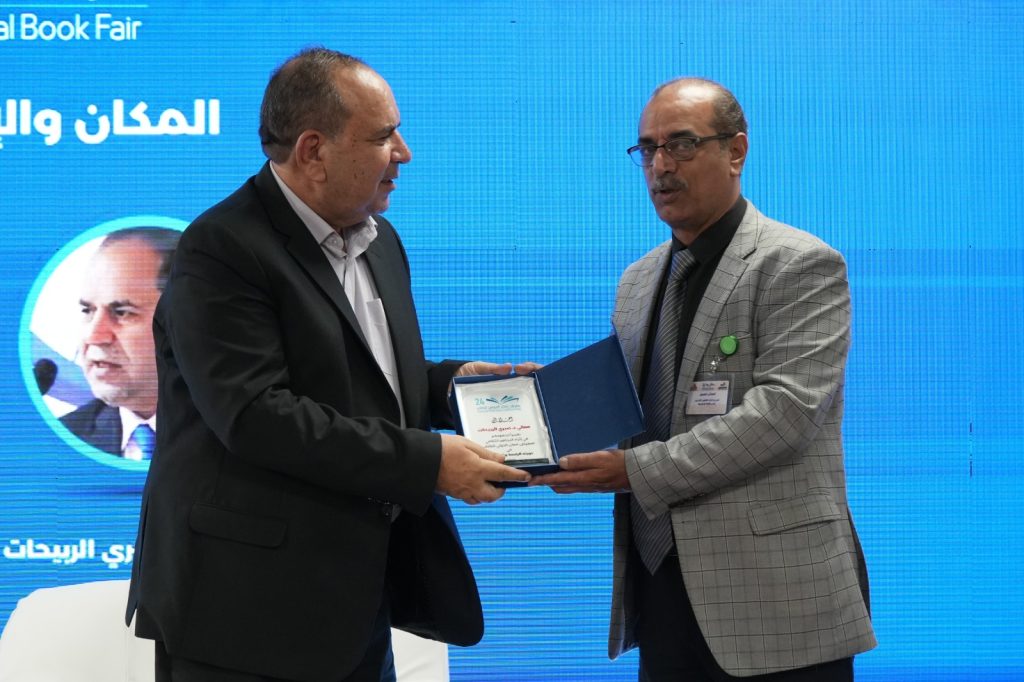 وفي نهاية الندوة، كرم رئيس اتحاد الناشرين الأردنيين ومدير معرض عمان الدولي للكتاب جبر أبوفارس المشاركين في الندوة بدرع المعرض لهذا العام.