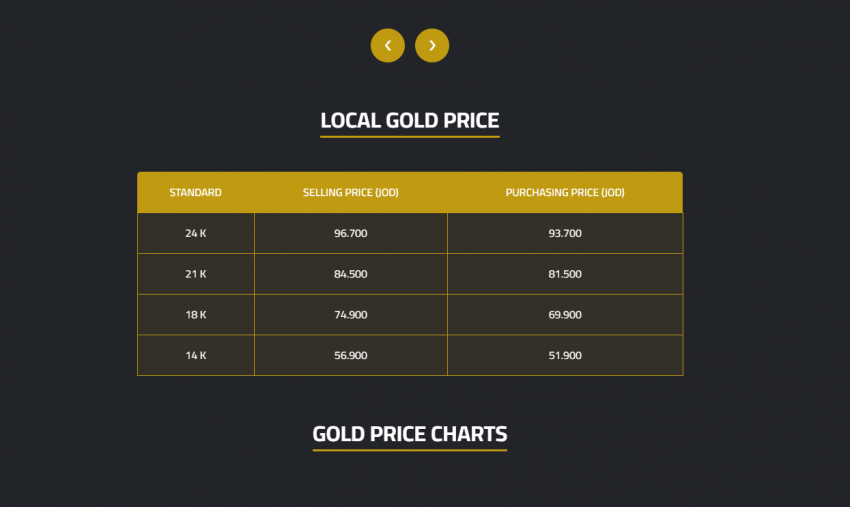 وارتفع سعر الغرام الواحد من الذهب لعيارات 24 و18 و14 إلى 96.70دينارا و 74.90دينارا و56.90 دينارا على التوالي، لغايات البيع من محلات الصياغة.
